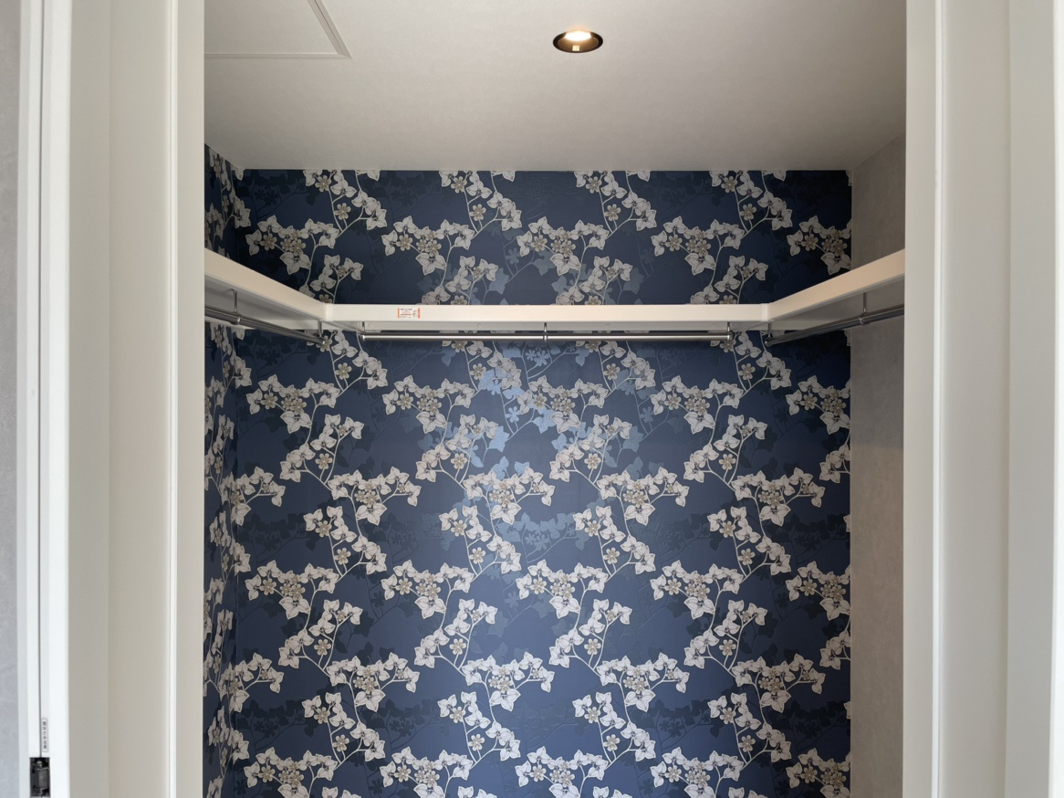 クローゼットの中もアクセントウォールになっています。