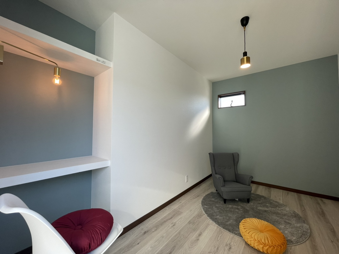 こちらのお部屋はアクセントに優しいブルーのクロスを使用しています。