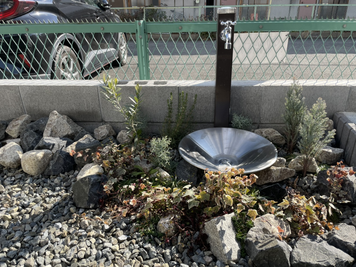 屋外水栓は花の水やりや洗車に便利です。