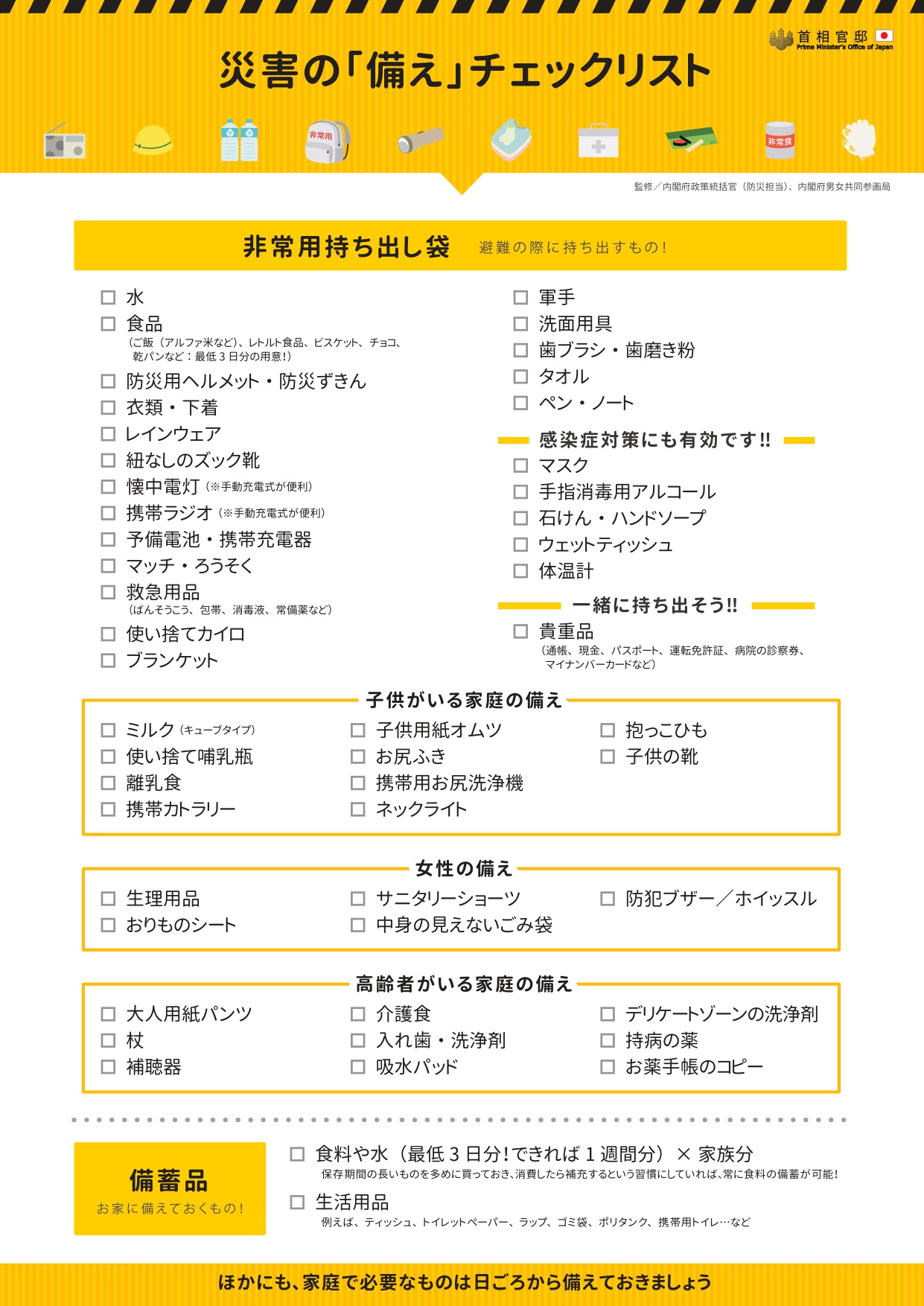 【非常用品のリスト】※首相官邸HPより引用