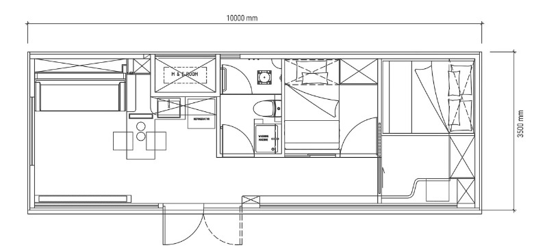 最新モデル「cube Two X」は約35平方メートルで約1100万円で同社最大のユニットのようです。