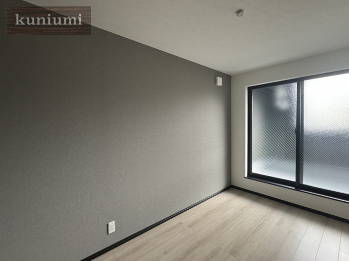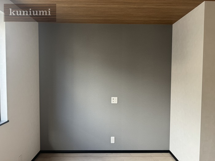 グレーのアクセントクロスがおしゃれですね。