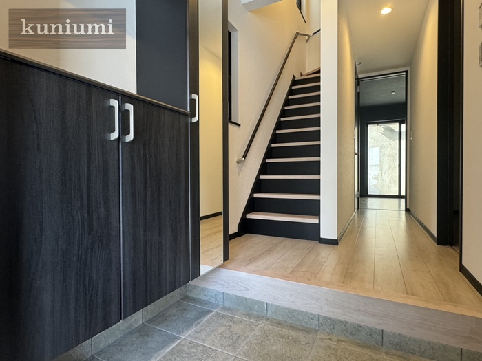 階段は蹴込みと側板をブラックにすることでかっこいい印象に。