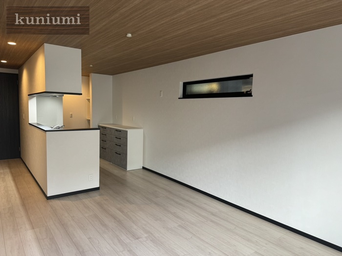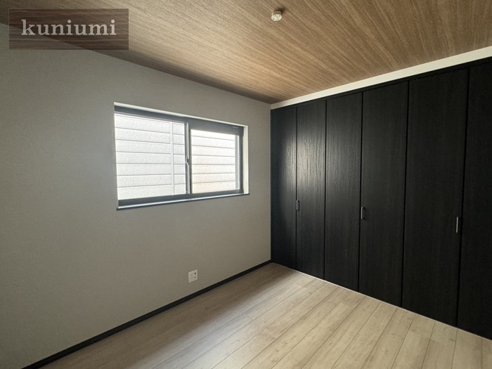 木目天井とブラックの建具で落ち着きのある居室です。