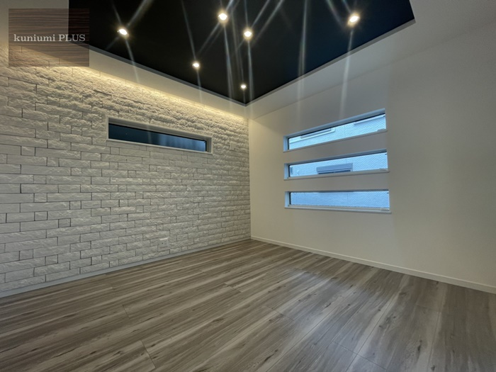 横長のスリット窓がおしゃれなお部屋です。