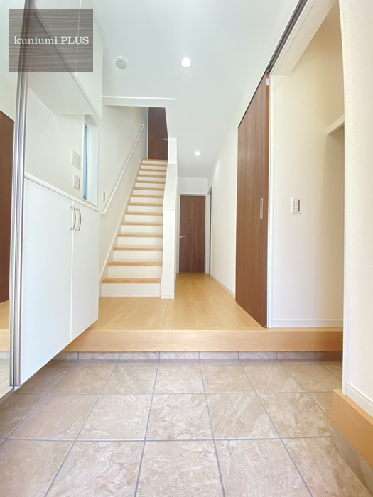 階段上部の窓から陽ざしがたっぷり入る明るい階段です。