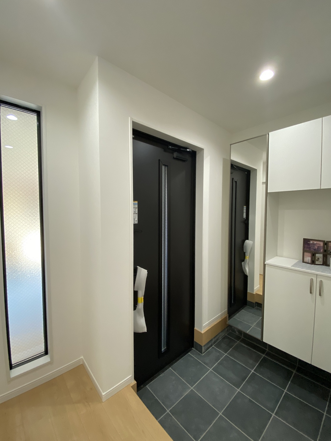 大きな窓や扉から光が取り込める明るい玄関です。