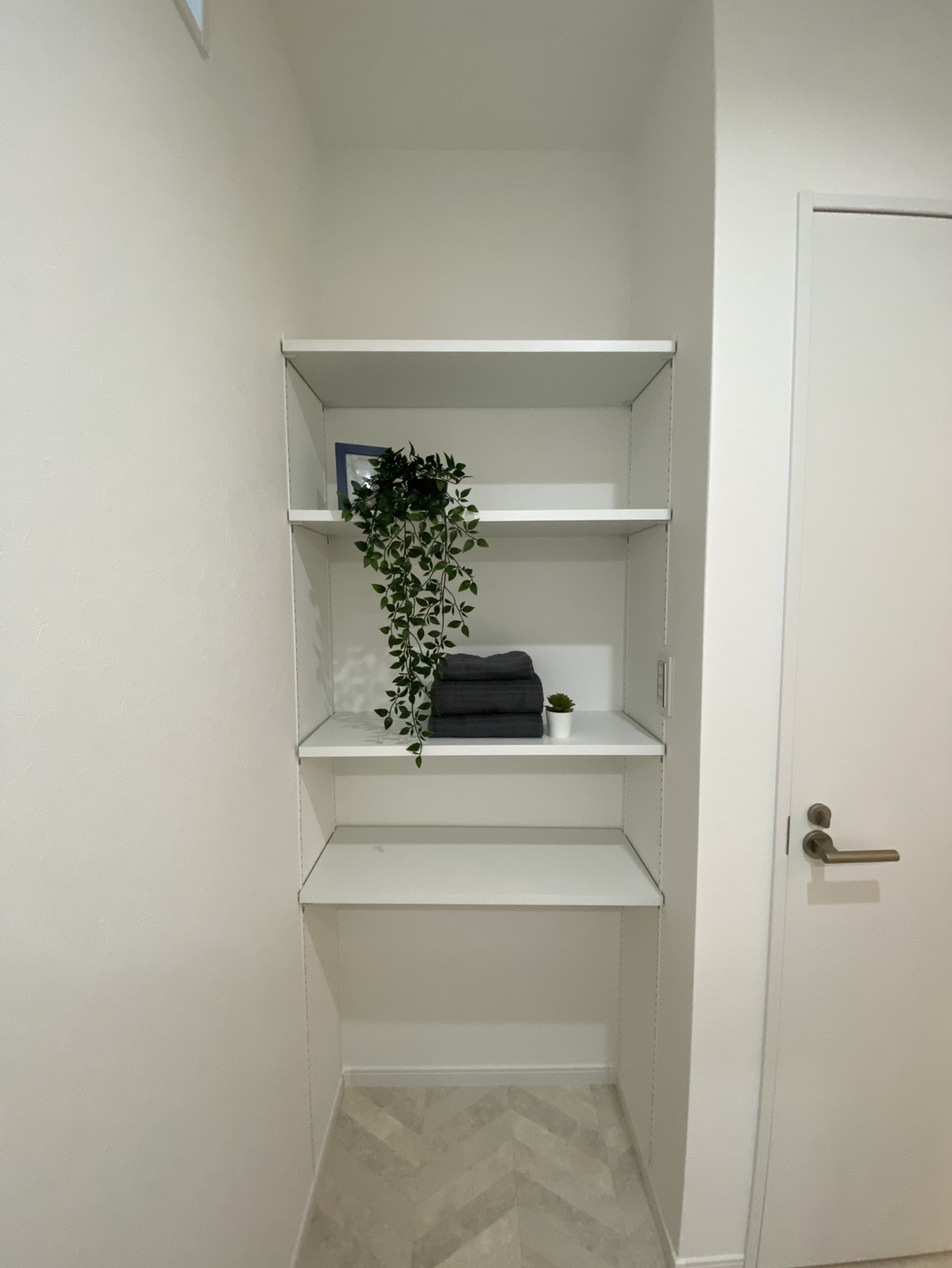 可動棚も付いていますので、バスタオルや着替えなど