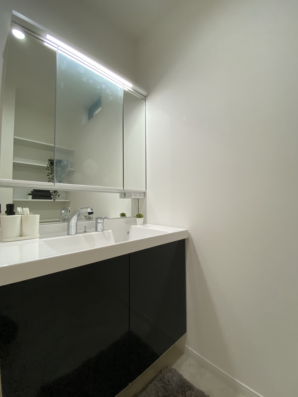 スタイリッシュな洗面化粧台は収納も