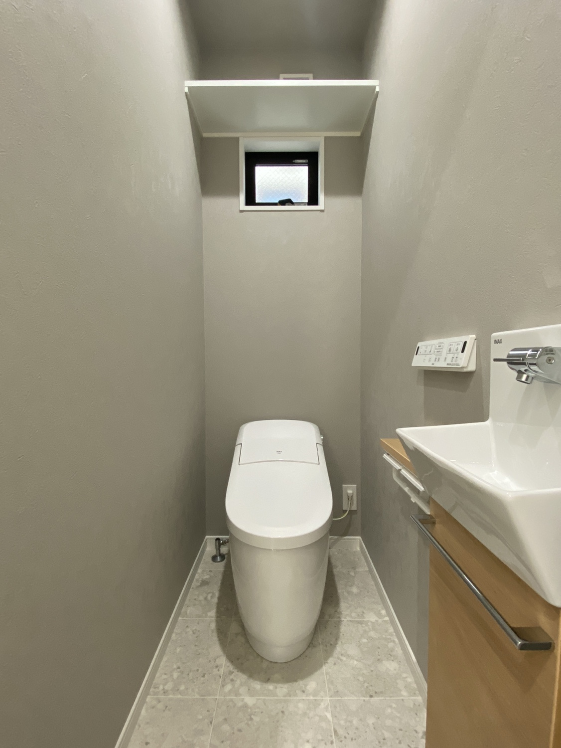 手洗い水栓と収納も付いていて便利です。