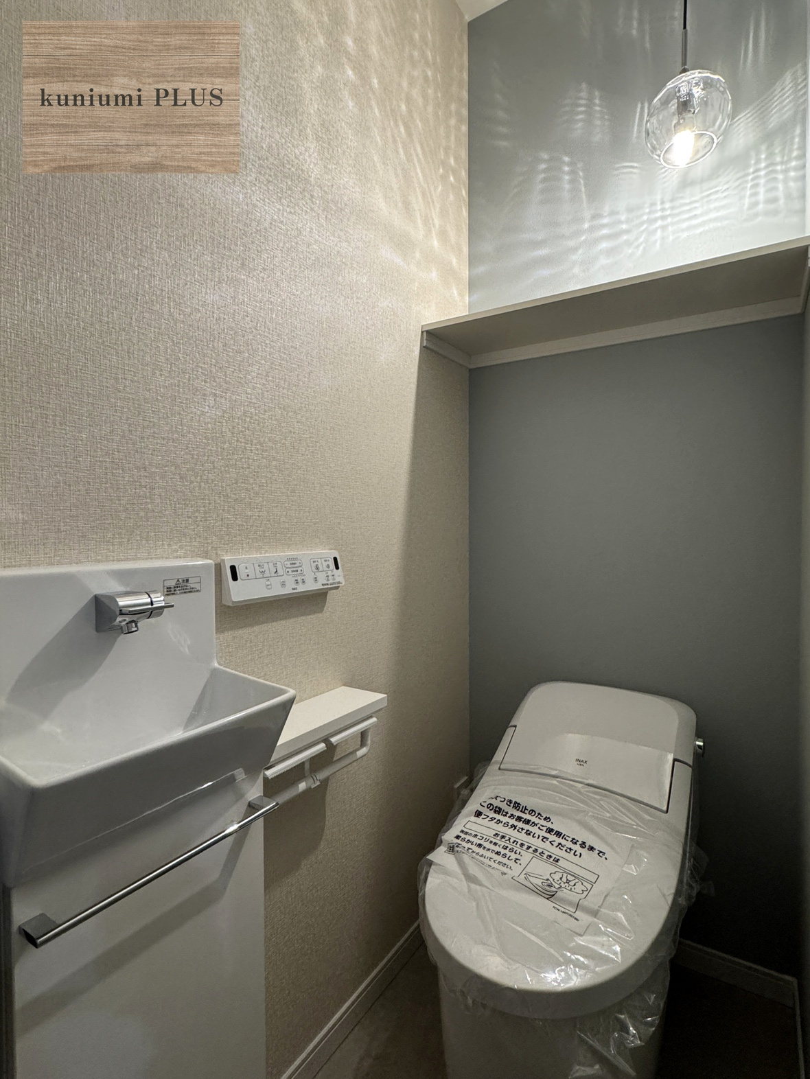ライトの幻想的な光の模様が浮かびあがる素敵なトイレ。