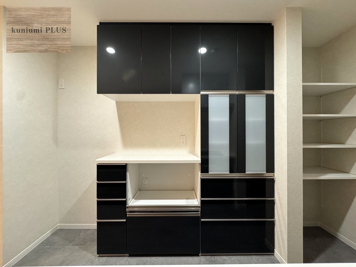 収納が多いので、散らかりがちなキッチンの整理整頓も楽々。