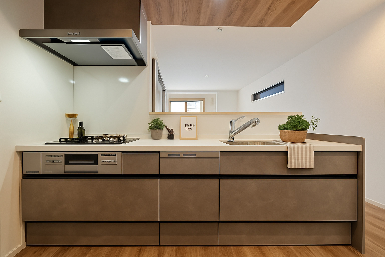 やさしさを添えるナチュラル雰囲気の対面キッチン。