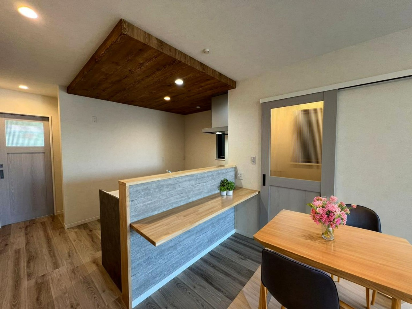 木目のカウンターが空間に