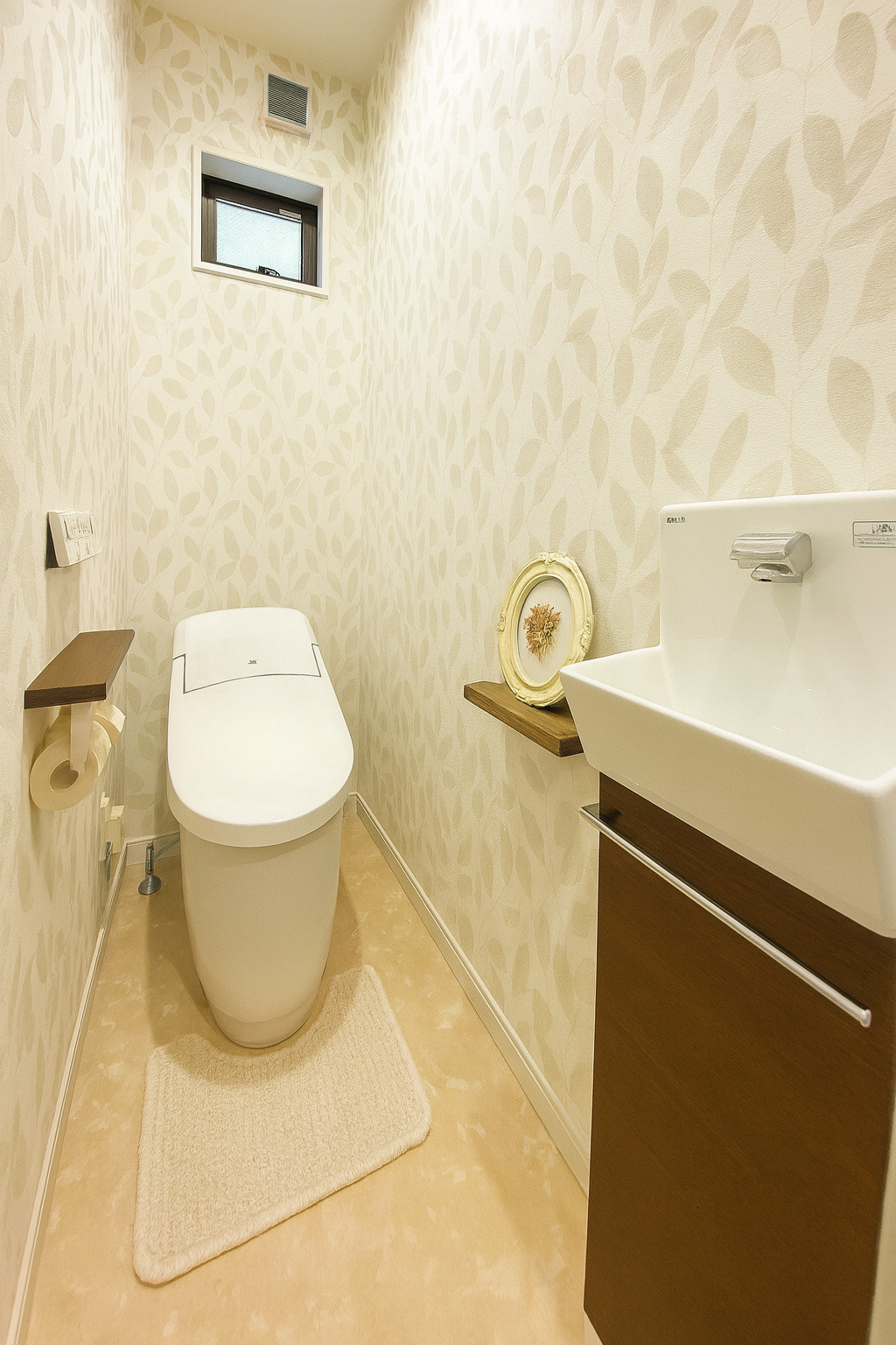 壁紙に繊細なリーフ模様が施され
