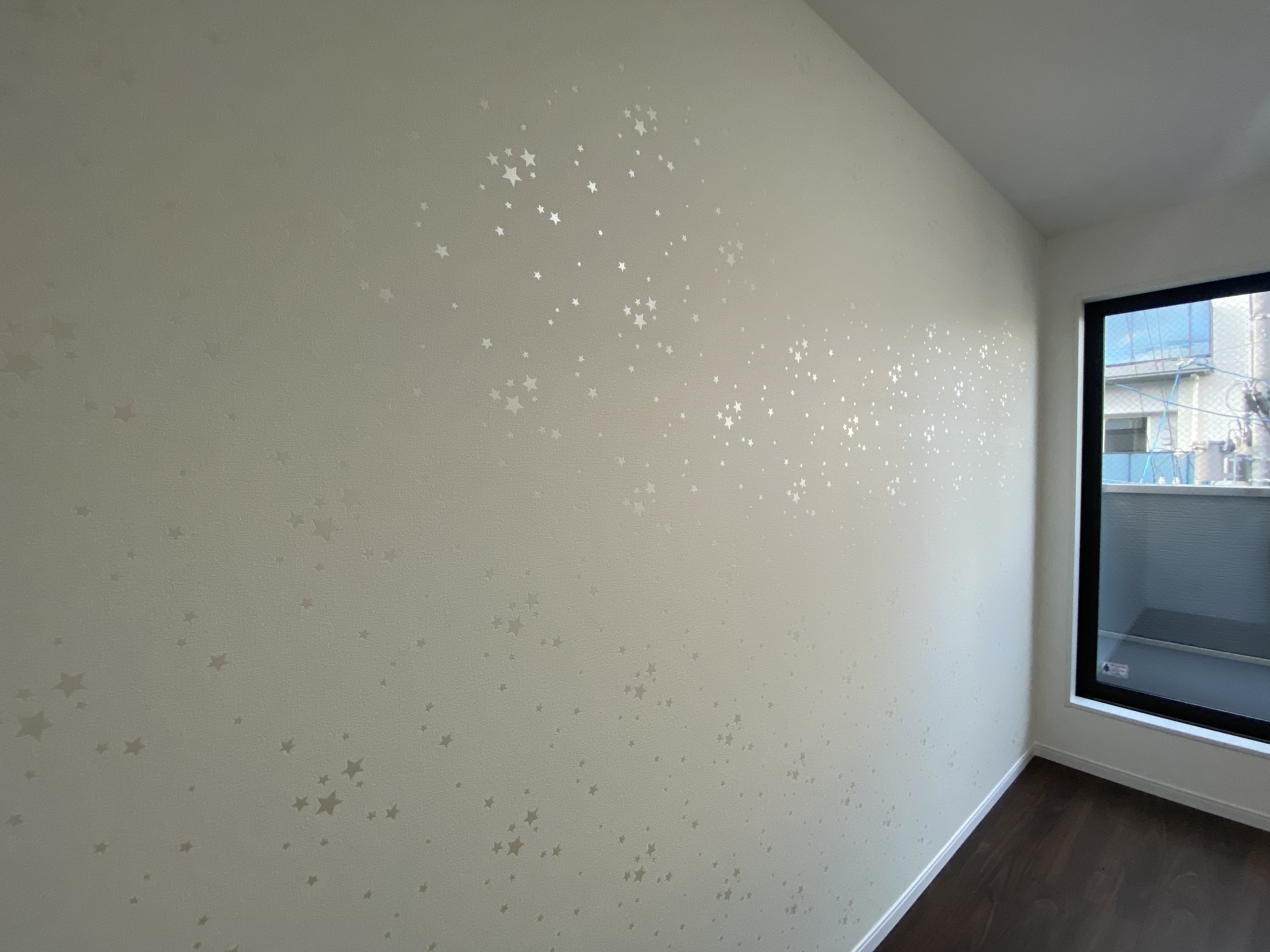 壁一面に広がる星柄のクロスが
