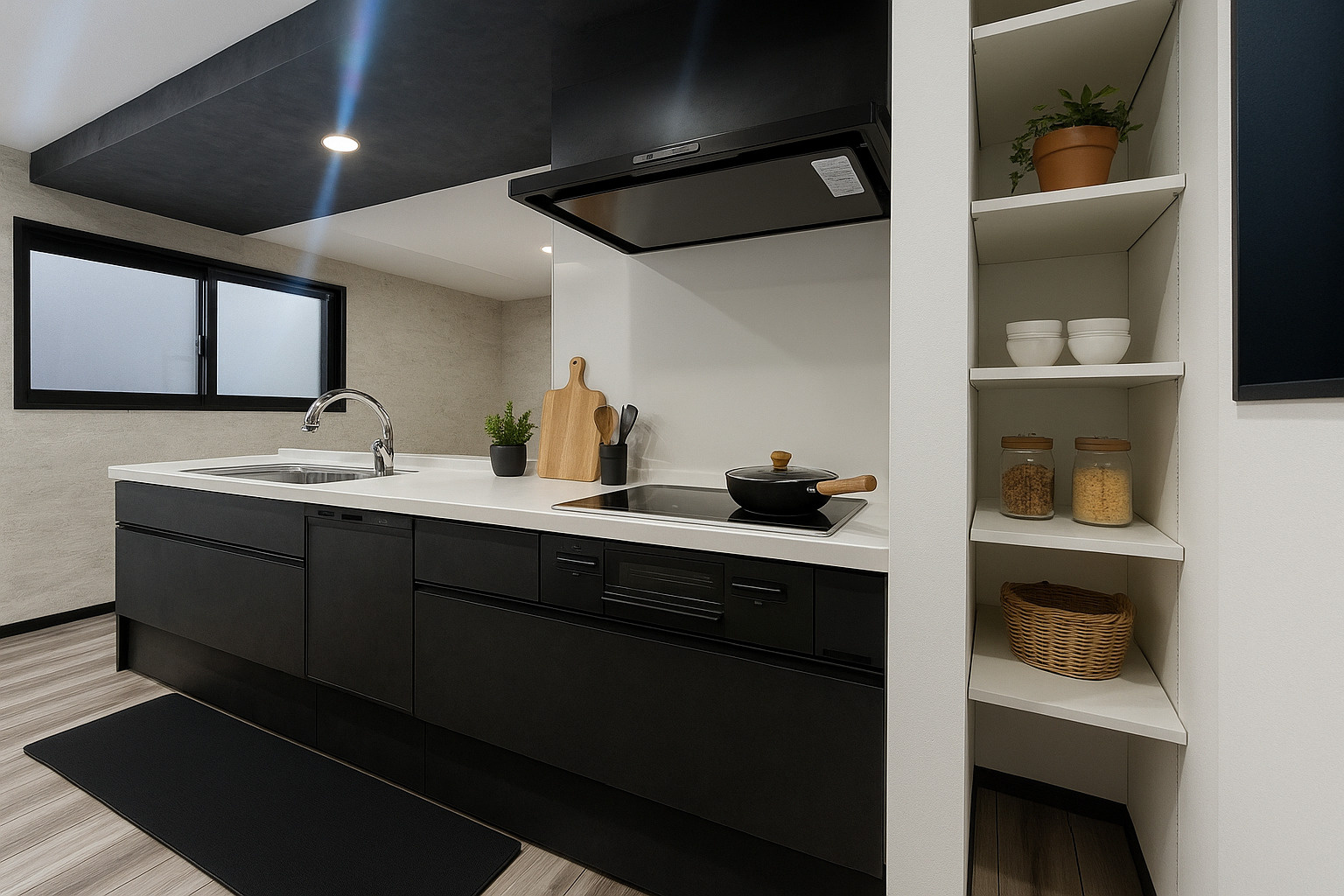 収納力と作業性を兼ね備えたカウンターと