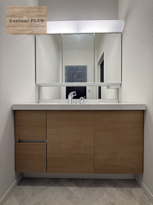 木目調の洗面台。