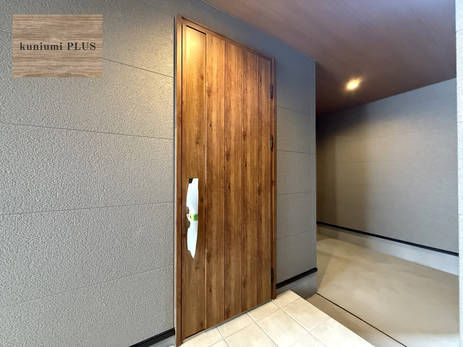 木目の美しいドアを中心に
