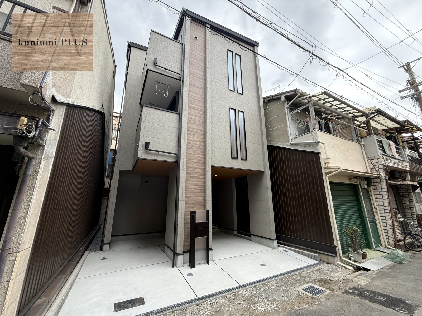 落ち着いたグレージュの外壁に、