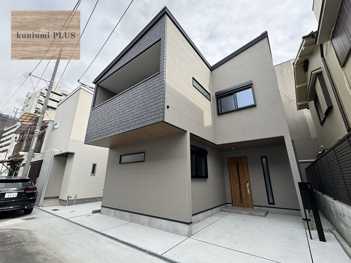 淡いグレージュの外壁をキャンバスに、