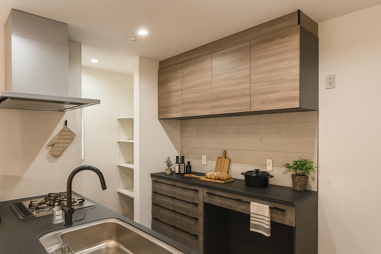 天板から扉面材まで質感にこだわったデザインで