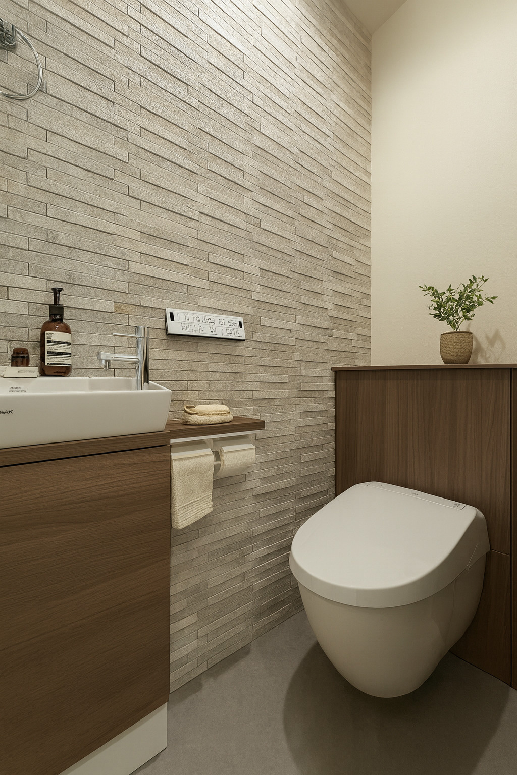 そして壁には質感豊かな石貼り調の