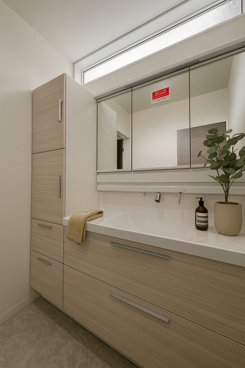 収納力のある洗面化粧台。