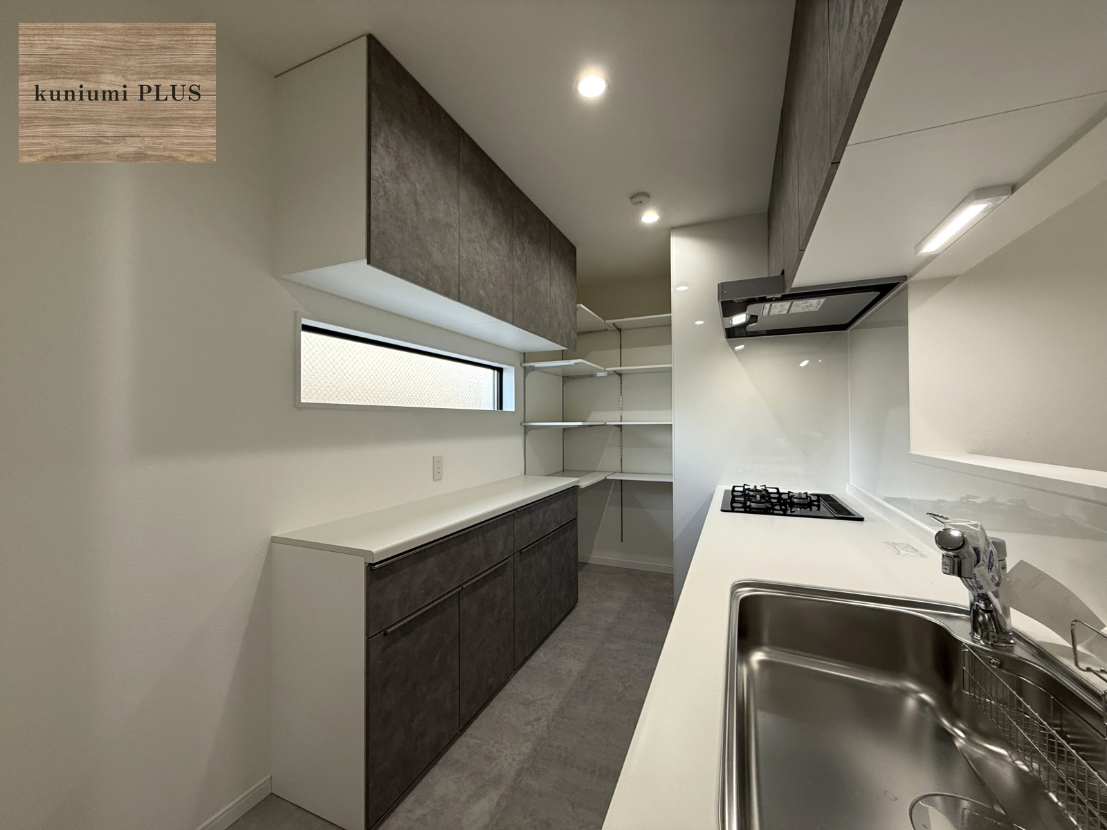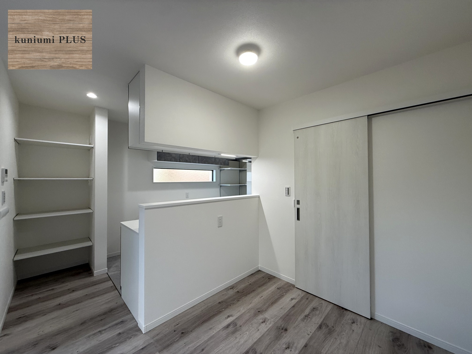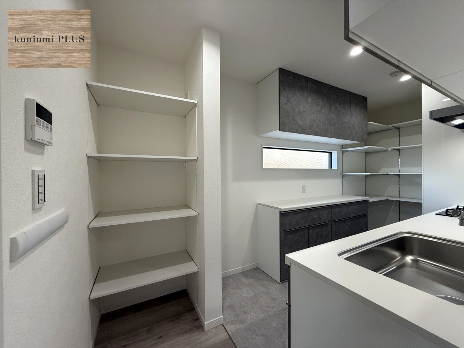 パントリーの反対側にもオープン収納を設置。