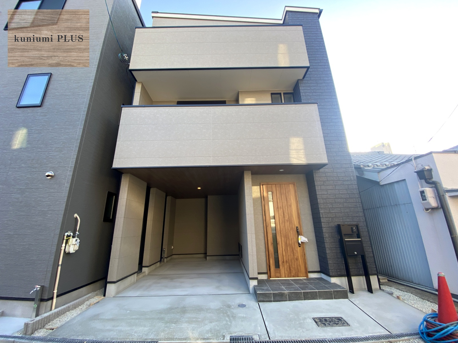 玄関まわりには木目のドアを採用し、