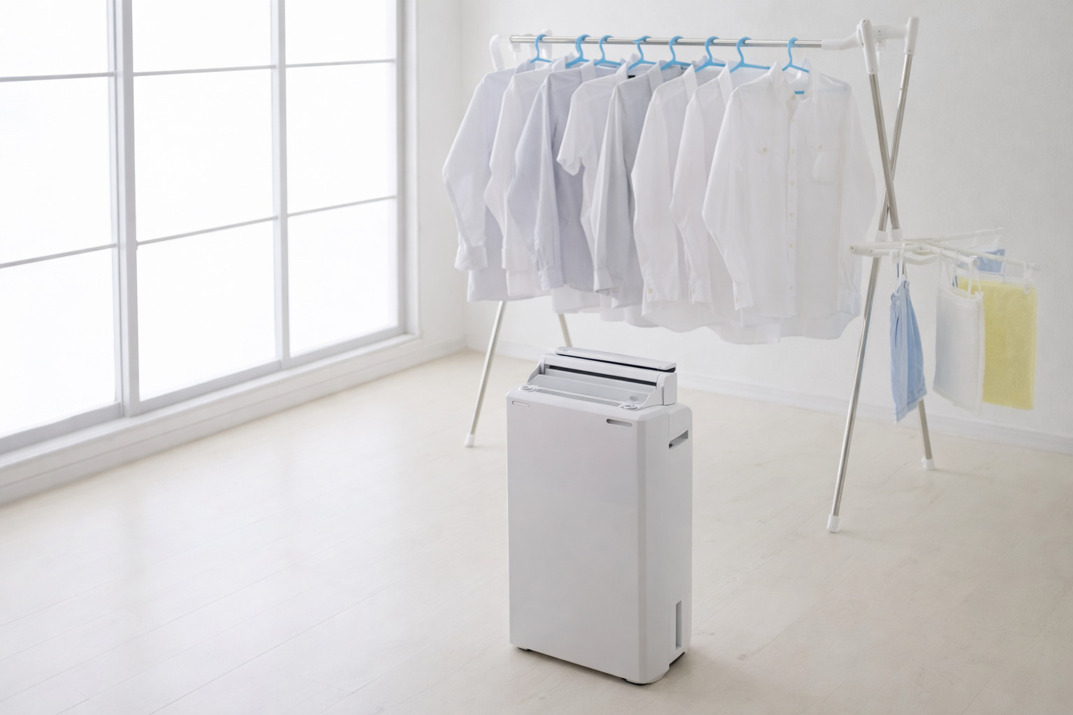 除湿機を洗濯物の真下に置き、